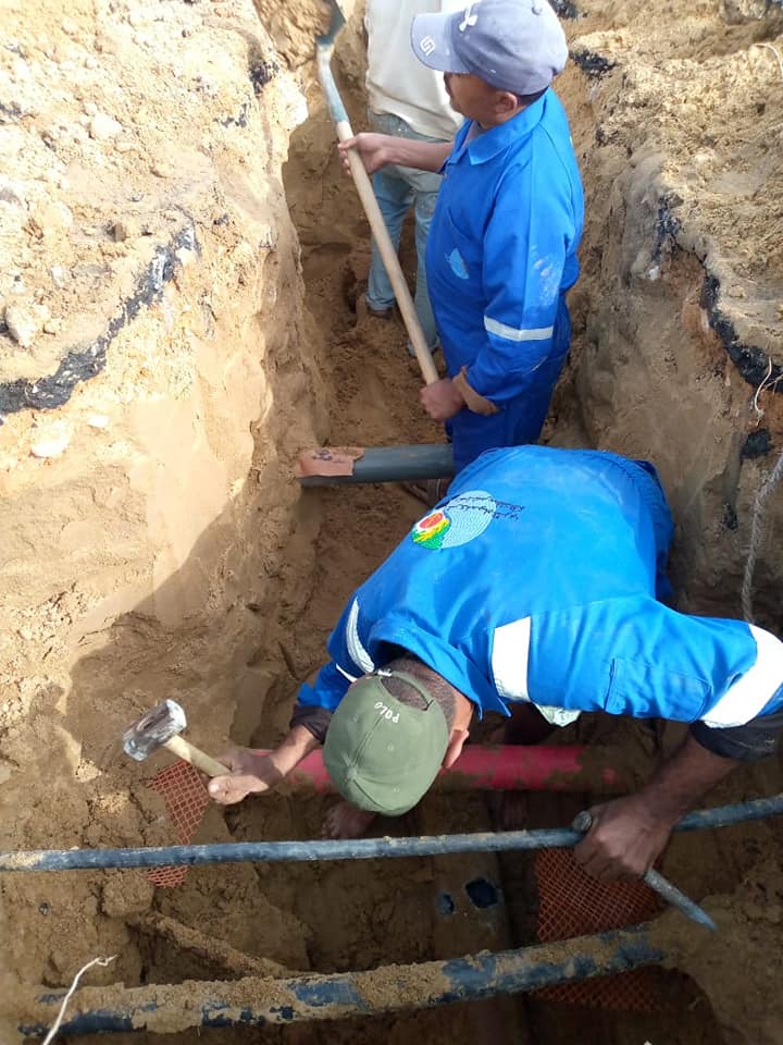 وفى منطقة القنطرة شرق أنهت فرق الصيانة الفنية وفريق الشبكات بالمنطقة باشراف اللواء محمد بهاء مدير المنطقة أعمال إصلاح كسر بخط مياه 2 بوصة بعزبة الغطوس .