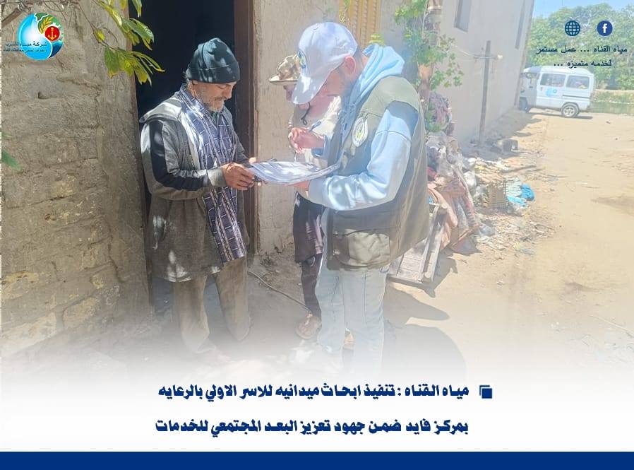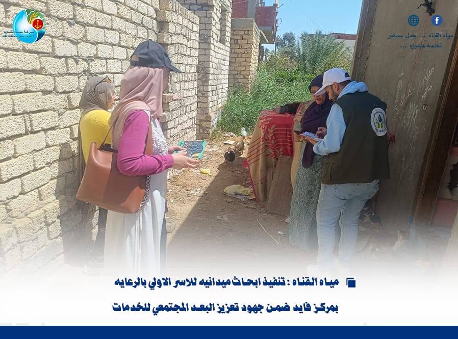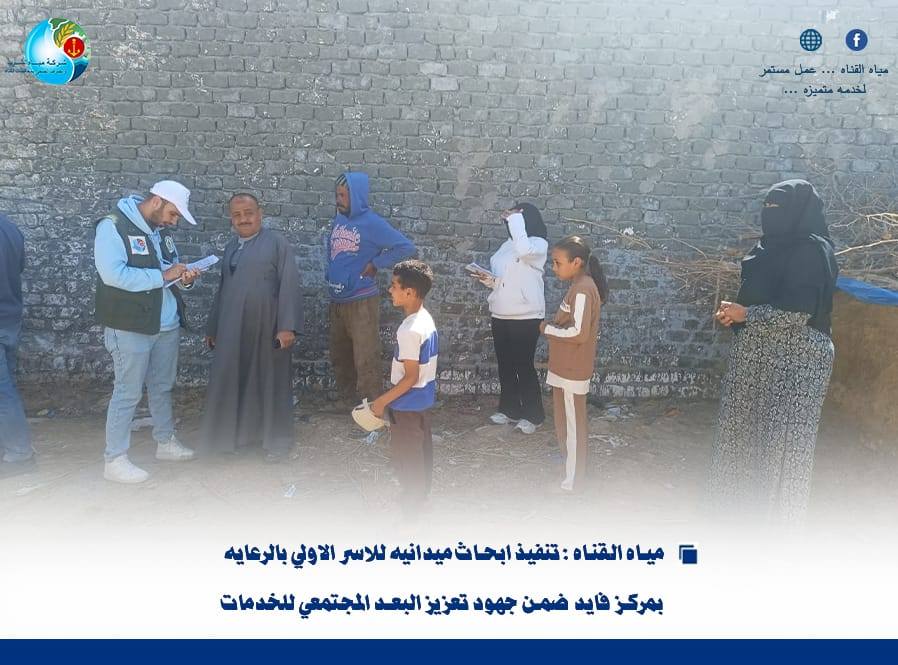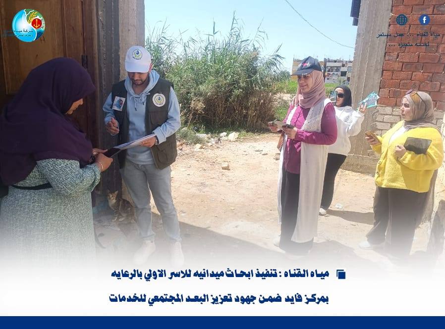 مياه القناة: تنفيذ أبحاث حالة ميدانية للأسر الأولى بالرعاية بمركز ومدينة فايد ضمن جهود تعزيز البعد المجتمعي للخدمات…