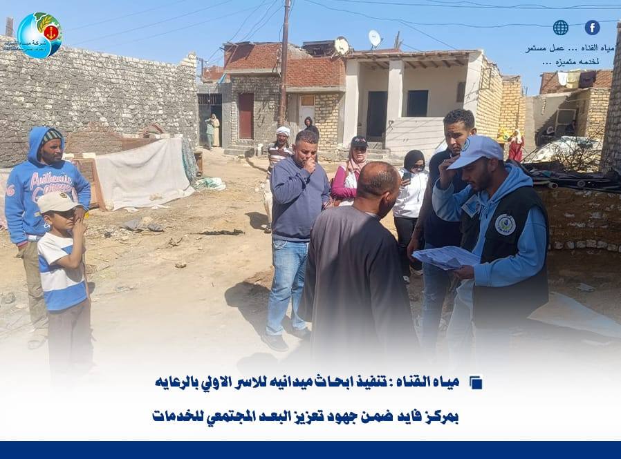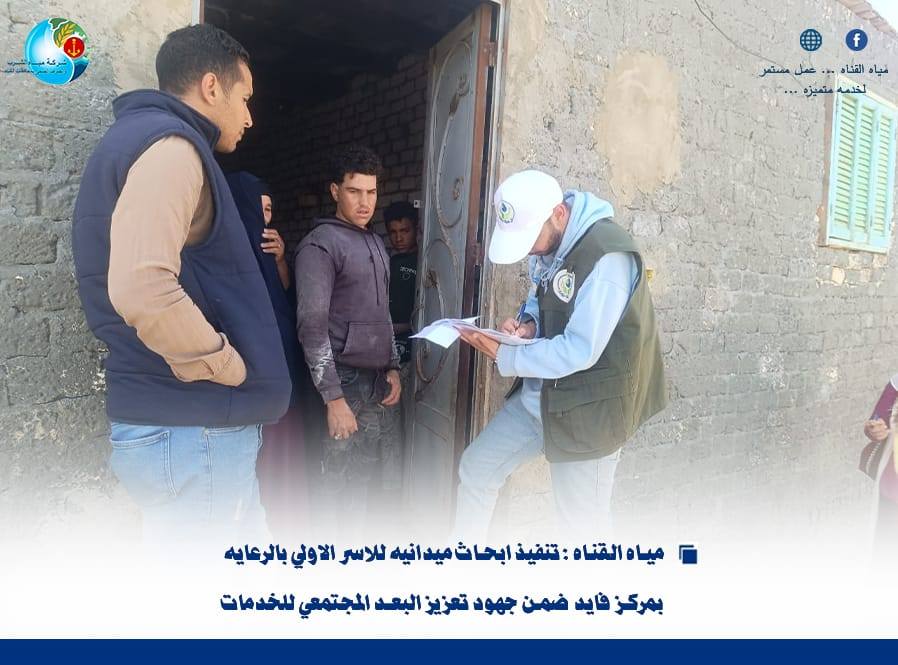 وفي هذا السياق، وتنفيذًا لتوجيهات اللواء أ.ح مهندس/ أحمد محمد رمضان، نفذ فريق المشاركة المجتمعية بالشركة عددًا من أبحاث الحالة الميدانية للأسر الأولى بالرعاية بعدد من القرى التابعة لمركز فايد، وذلك بهدف رصد الاحتياجات الفعلية للأسر، ودراسة أوضاعها الاجتماعية والاقتصادية، تمهيدًا لبحث سبل تقديم أوجه الدعم المناسبة لها.