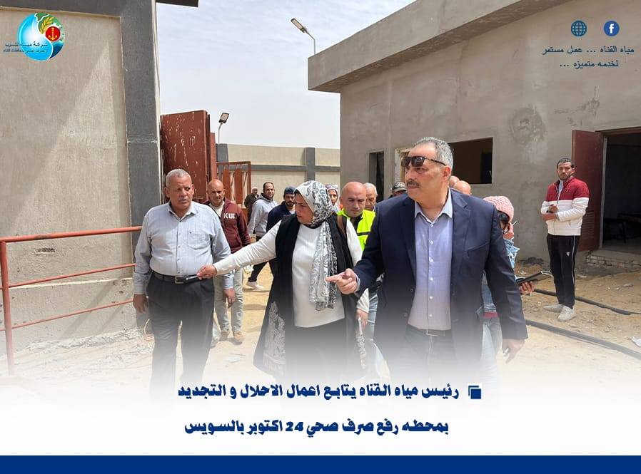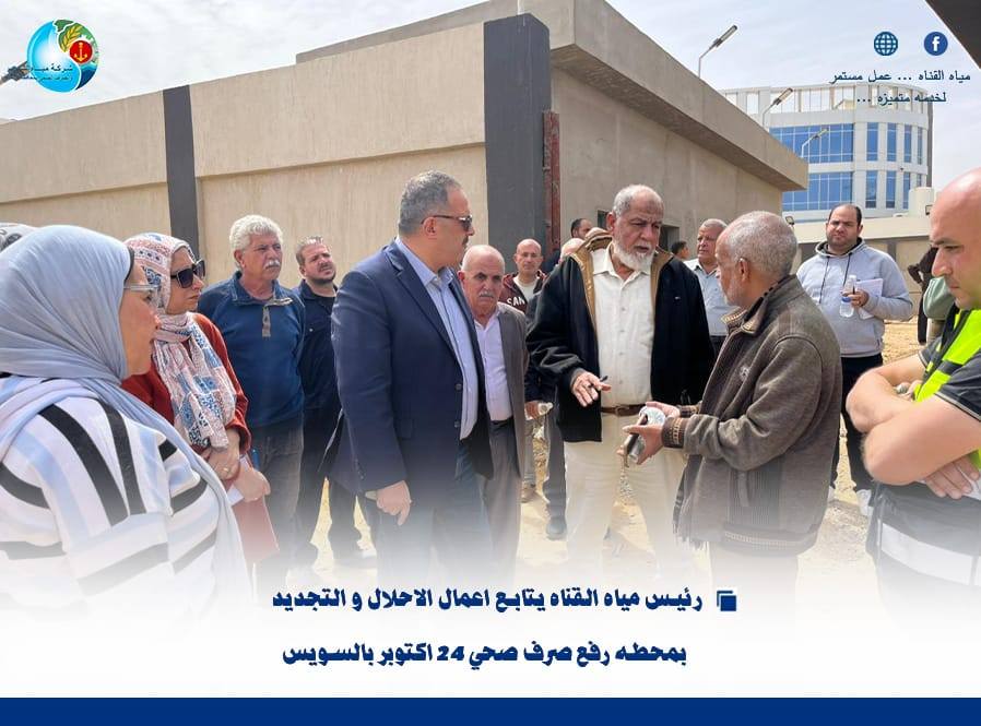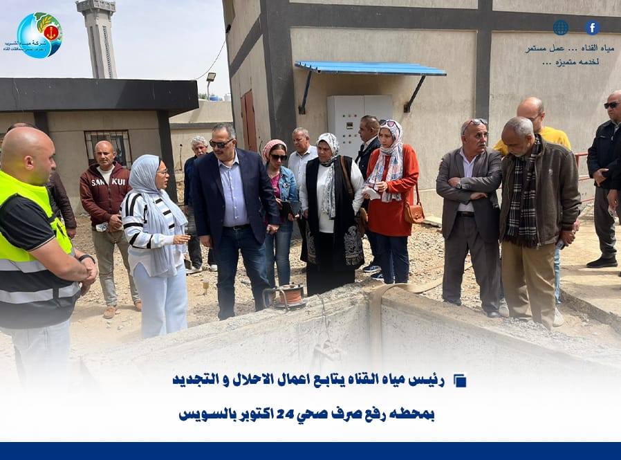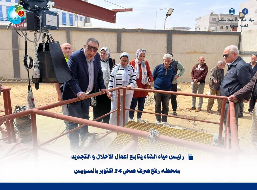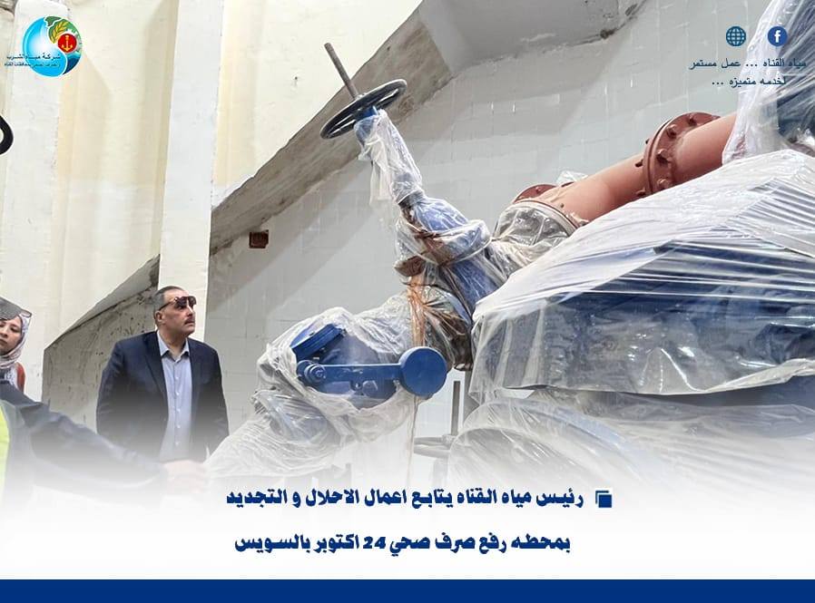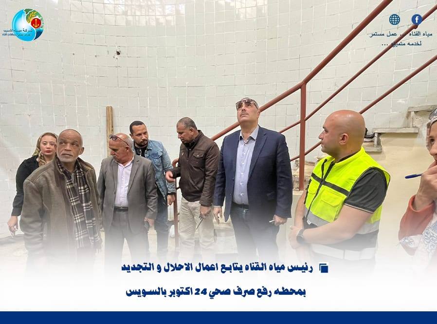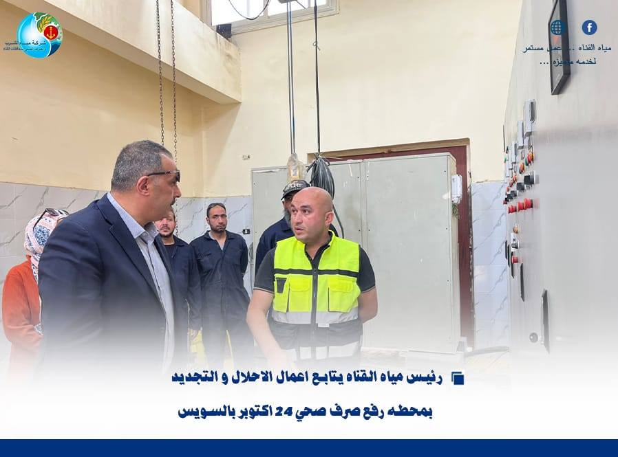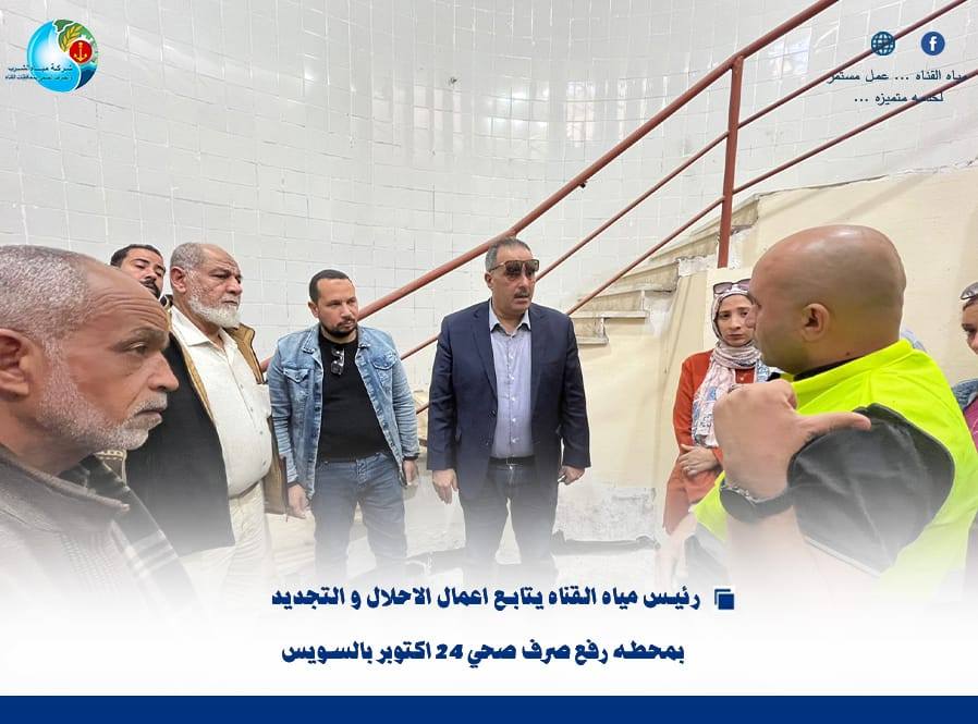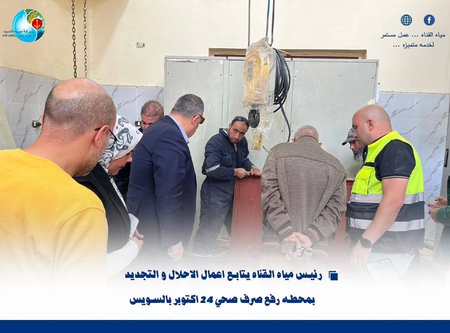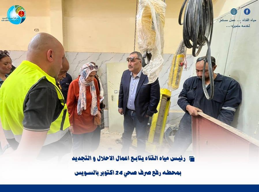 “رئيس مياه القناة يتابع أعمال الإحلال والتجديد بمحطة رفع صرف صحي 24 أكتوبر بالسويس”….