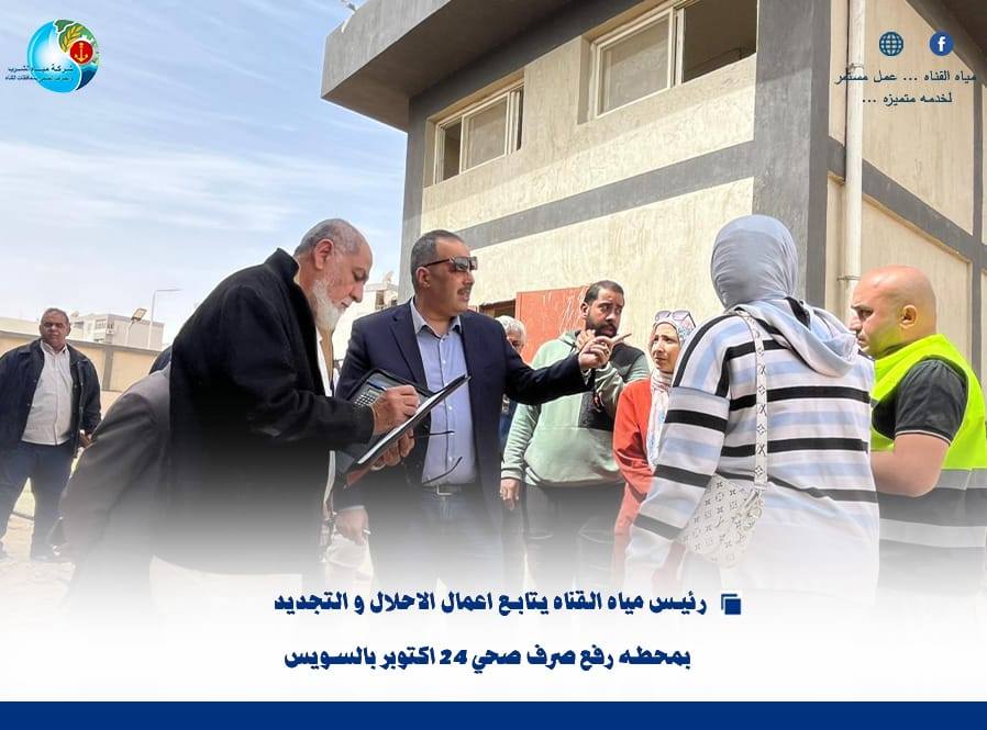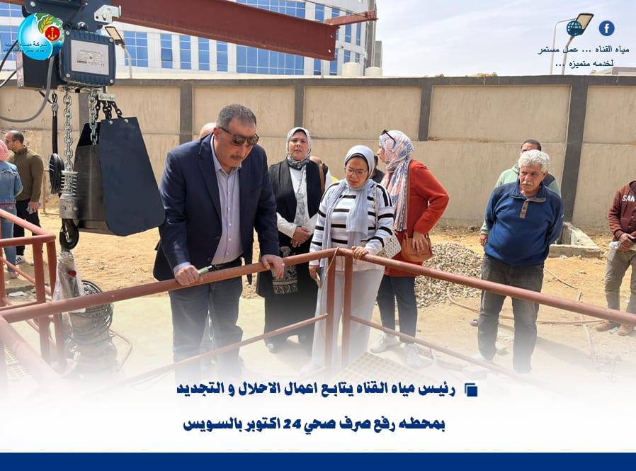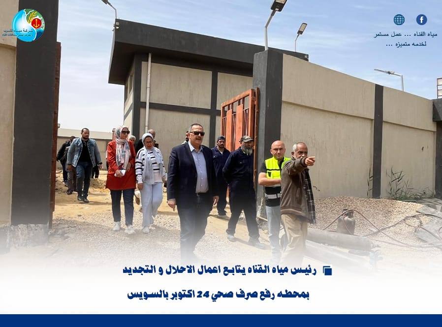 تفقد اليوم اللواء أ.ح مهندس/ أحمد رمضان، رئيس مجلس الإدارة والعضو المنتدب لشركة مياه الشرب والصرف الصحي بمحافظات القناة ، أعمال الإحلال والتجديد الجارية بمحطة رفع صرف صحي 24 أكتوبر بمدينة السويس، وذلك في إطار المتابعة الميدانية المستمرة لمشروعات تطوير ورفع كفاءة البنية التحتية بقطاع الصرف الصحي.