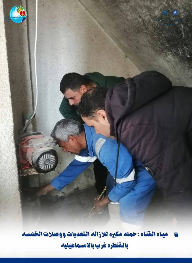 في إطار توجيهات اللواء أ.ح مهندس أحمد محمد رمضان، رئيس مجلس الإدارة والعضو المنتدب لشركة مياه الشرب والصرف الصحي بمحافظات القناة، تواصل لجنة التعديات بمنطقة القنطرة غرب تنفيذ حملاتها الميدانية لرصد وإزالة التوصيلات المخالفة والتعديات الواقعة على شبكات مياه الشرب والصرف الصحي، وذلك ضمن خطة الشركة لإحكام الرقابة والحفاظ على المياه المنتجة وضمان وصول الخدمة إلى مستحقيها.