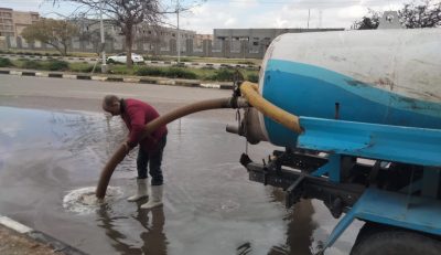 إستمرار جهود شركة مياه القناة فى سحب مياه الأمطار بالاسماعيلية