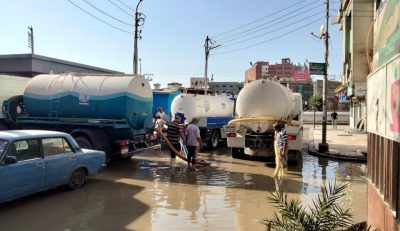 البدء فى اعمال اصلاح خط صرف صحى حى الشيخ زايد والانتهاء من رفع المياه بالشارع التجارى .